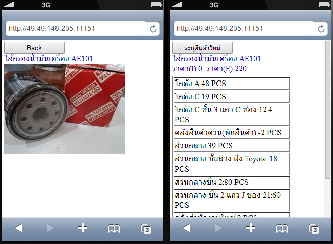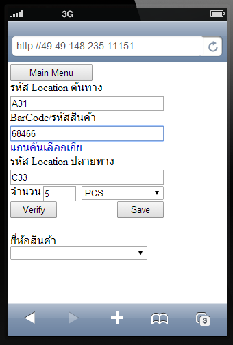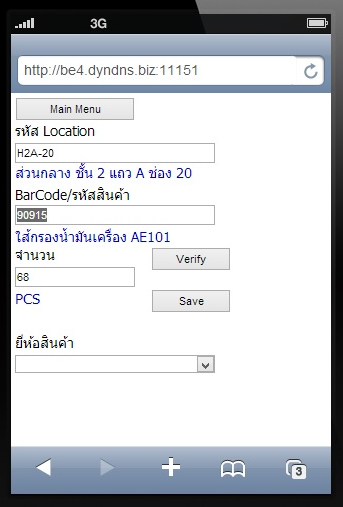 Mobile การตรวจนับสินค้าโดยทั่วไปใช้การนับสินค้าแล้วจดบันทึกด้วยกระดาษ แล้วจึงกลับมาป้อนจำนวนสินค้าที่นับได้ลงเครื่องคอมพิวเตอร์อีกที แต่ปัญหาคือทำงานได้ช้ามาก และเมื่อกลับมาป้อนจำนวน ปรากฏว่าเกิดความผิดพลาดในการจดบันทึก ต้องกลับตรวจสอบอีกรอบ โปรแกรมขอเสนอแนวทางใหม่ด้วยการใช้อุปกรณ์ไร้สายที่มี Web Browser ใด ๆ ก็ได้ เพียงเปิด Web Browser ติดต่อเข้ามาที่โปรแกรมด้วย Web Address ตามที่โปรแกรมแจ้ง ก็จะพร้อมทำงานได้ ระบุรหัส Location ระบุรหัสสินค้าตามที่ปรากฏที่สินค้า (หรืออ่านรหัส Barcode ด้วยเครื่องอ่าน Barcode) นับจำนวนสินค้า แล้วป้อนจำนวนที่นับได้ กดปุ่ม Save เป็นอันเสร็จเรียบร้อย ไม่ต้องใช้กระดาษทด ![]() การโอนย้ายสินค้าระหว่าง Location ด้วยอุปกรณ์ Mobile การบันทึกการโอนย้ายสินค้าระหว่าง Location สามารถใช้อุปกรณ์ Mobile ติดตามสินค้าไปด้วยเลย ทำให้สามารถระบุตำแหน่ง Location ต้นทาง และเก็บสินค้า ที่ตำแหน่ง Location ปลายทางได้ทันที ถูกต้องแน่นอน ไม่ต้องมีการจดบันทึกแล้วมาป้อนข้อมูลอีกที ![]() การเรียกดูสินค้าคงคลังด้วยอุปกรณ์ Mobile ![]() |