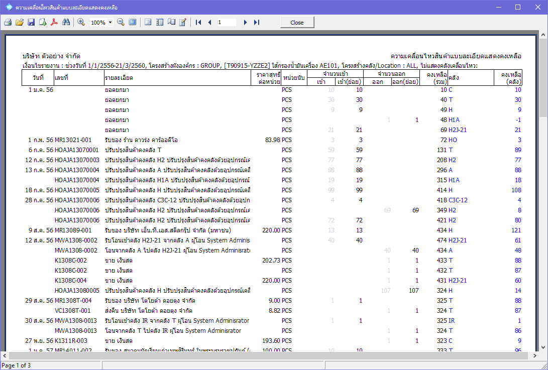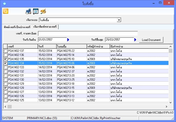 ระบบรายงานของโปรแกรม การเลือกเงื่อนไขข้อมูลในการแสดงรายงาน โปรแกรมทั่ว ๆ ไปมักให้ผู้ใช้งานเลือกช่วงข้อมูลของรายงานด้วยขอบเขตของรหัส แต่บางธุรกิจไม่ได้กำหนดโครงสร้างของรหัส เช่นรหัสสินค้าด้วยตัวเอง ใช้รหัสสินค้าเดียวกับที่ ผู้จำหน่ายใช้ เพื่อความสะดวกในการทำรับสินค้า แต่เมื่อต้องการเรียกดูรายงาน กลับไม่สามารถ กำหนดขอบเขตข้อมูลที่ต้องการได้ เพราะรหัสสินค้ากระจัดกระจายตามผู้จำหน่าย หลาย ๆ ราย ![]() การดัดแปลงแก้ไขรูปแบบรายงาน รายงานของโปรแกรมสามารถแก้ไขดัดแปลงรูปแบบได้ ![]() การปรับรูปแบบการพิมพ์เอกสารต่าง ๆ โปรแกรมสามารถปรับแก้ไขการพิมพ์เอกสารต่าง ๆ ได้ ทั้งเอกสารขาย เอกสารซื้อ ใบกำกับภาษี ใบเสร็จรับเงิน ใบสำคัญจ่าย ฯลฯ ![]() เอกสาร 1 เอกสารแต่พิมพ์ได้หลายรูปแบบ สิ่งหนึ่งที่พบบ่อยคือ ใบสั่งซื้อสินค้า แต่ละผู้จำหน่ายก็จะบังคับให้เราส่งใบสั่งซื้อไปให้ในรูปแบบที่ผู้จำหน่ายกำหนดมา 5 ผู้จำหน่ายก็ 5 รูปแบบ การแก้ปัญหาของโปรแกรมทั่ว ๆ ไป คือถ่ายข้อมูลออก Excel แล้วจัดรูปแบบใหม่ด้วย Excel แล้วจึงส่งให้ผู้จำหน่าย ยุ่งยากเสียเวลา แต่ในโปรแกรม Pailin ท่านสามารถสั่งพิมพ์ใบสั่งซื้อ หรือเอกสารอื่น ๆ ได้หลายรูปแบบ แต่ละรูปแบบก็ปรับรูปแบบตามที่ผู้จำหน่ายต้องการ สั่งพิมพ์จากโปรแกรมส่งไปได้ทันที (Setup ทีเดียว) ![]() การสั่งพิมพ์เฉพาะบางเอกสารครั้งละหลายเลขที่ มีบางครั้งที่การออกเอกสารจะเป็นการบันทึกไว้ล่วงหน้าจำนวนมาก ๆ แล้วจึงสั่งพิมพ์เอกสารครั้งเดียวต่อเนื่องหลาย ๆ ใบ แต่เอกสารที่ต้องการพิมพ์ไม่เรียงลำดับต่อเนื่องกัน ทำให้ต้องสั่งพิมพ์ทีละเลขที่ ทำให้เสียเวลา และน่าเบื่อเพราะอาจจะต้องทำ ทุกเดือน เช่น การออกใบกำกับภาษี เมื่อสิ้นเดือน โปรแกรม Pailin สามารถสั่งพิมพ์โดยกำหนดเลือกได้ว่าจะพิมพ์เลขที่ใดบ้าง ซึ่งไม่ต่อเนื่องกัน แล้วแต่เลือก ![]() การใช้เทคโนโลยี Client - Server โปรแกรมถูกออกแบบ และสร้างขึ้นด้วยเทคโนโลยี Client - Server บางงานประมวลผลด้วยเครื่องลูกข่าย(Client) บางงานประมวลผลด้วยเครื่องแม่ข่าย(Server) หลาย ๆ รายงานเมื่อเรียกใช้ โปรแกรมจะส่งความต้องการผลลัพธ์ ไปยัง Server เพื่อให้ Server ประมวลผลให้ แล้วส่งเพียงผลลัพธ์ที่ได้กลับมาแสดงผลที่เครื่องลูกข่าย ซึ่งอาจจะมีผลลัพธ์เพียงแค่ 3 บรรทัด เช่น ในฐานข้อมูลมีรายการซื้อ - ขายทั้งหมดกว่า 3 ล้านรายการ แต่เราต้องการดูความเคลื่อนไหวของสินค้าสินค้าตัวหนึ่ง จากทั้งหมดกว่า 1 แสนรายการสินค้า และเพียงแค่ช่วงเวลาเดือนเดียว ถ้าไม่ได้ใช้เทคโนโลยี Client - Server นั่นหมายความว่า โปรแกรมต้องนำเอารายการซื้อข