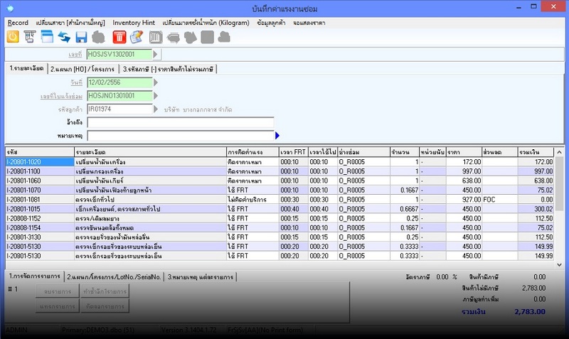 การคิดค่าแรงงานซ่อม ในการคิดค่าแรงงานซ่อม โปรแกรมรองรับการคิดค่าแรง ได้ทั้งแบบการคิดราคาเหมา หรือระบุค่าบริการเอง การใช้ FRT (Flat rate time) คือคิดราคาค่าแรงงานซ่อมตามชั่วโมงงานมาตรฐาน หรือคิดค่าแรงงานซ่อมตามชั่วโมงที่ใช้ไปจริง การให้ ส่วนลดค่าแรงงานซ่อม แต่จะถูกควบคุมด้วยการกำหนดสิทธิ์ว่ามีสิทธิ์แก้ไขหรือไม่ด้วย ![]() |