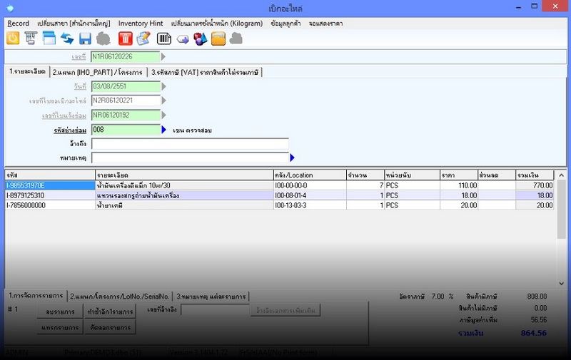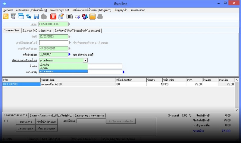 โปรแกรมสามารถสั่งเบิกอะไหล่เข้างานซ่อมได้ไม่จำกัดจำนวนครั้ง จนกว่าจะปิดงานซ่อม